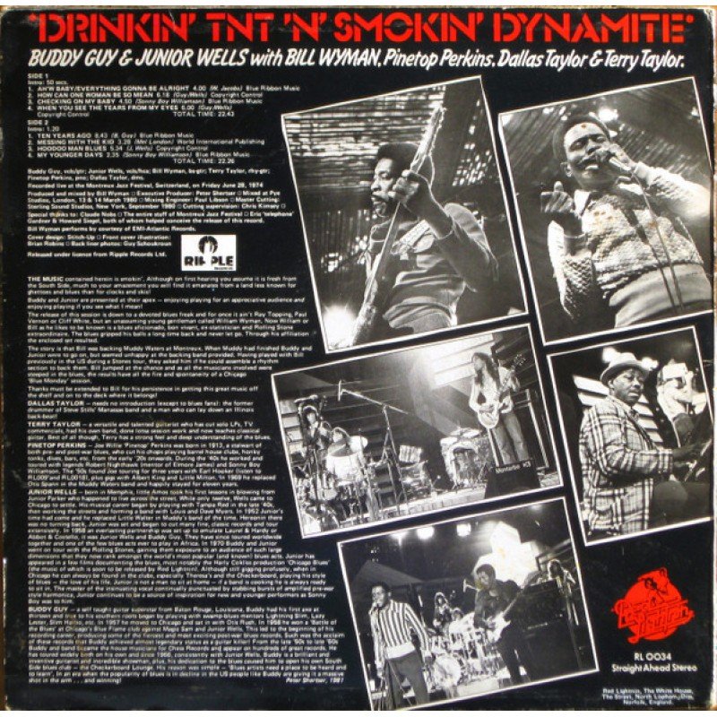 Buddy Guy & Junior Wells With Bill Wyman, Pinetop Perkins, Dallas Taylor & Terry Taylor (3) - Drinkin' T.N.T. N' Smoking Dynamite (LP, Album)
