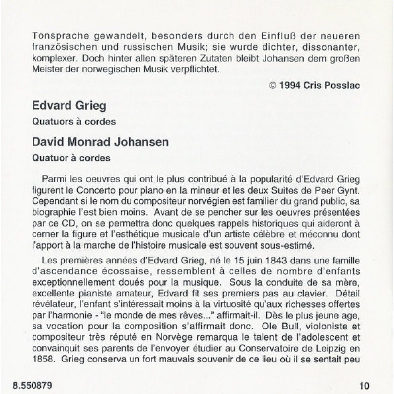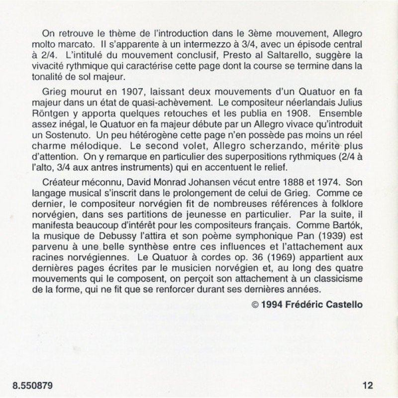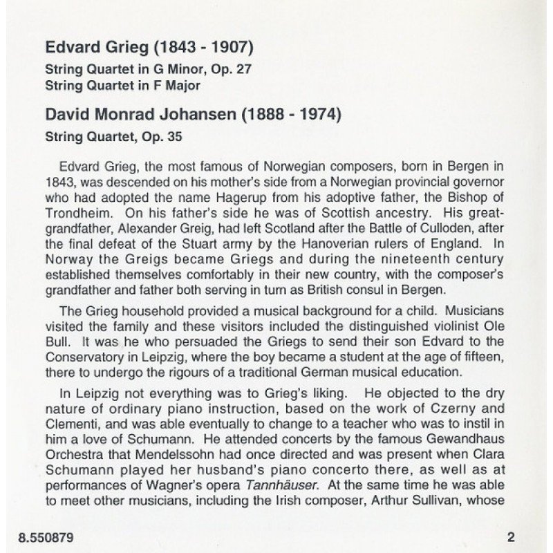 Grieg* / Johansen*, Oslo String Quartet - String Quartets: G Minor, Op. 27 • F Major / String Quartet, Op. 36 (CD, Album)