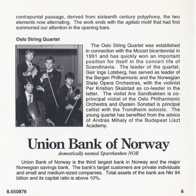Track List | String Quartet In G Minor, Op. 27 String Quartet In F Major String Quartet, Op. 35 |
