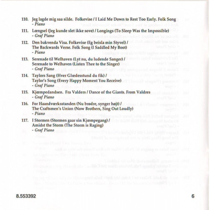 Track List | Norges Melodier, EG 108 (Norwegian Melodies) Nos. 64 To 117 |