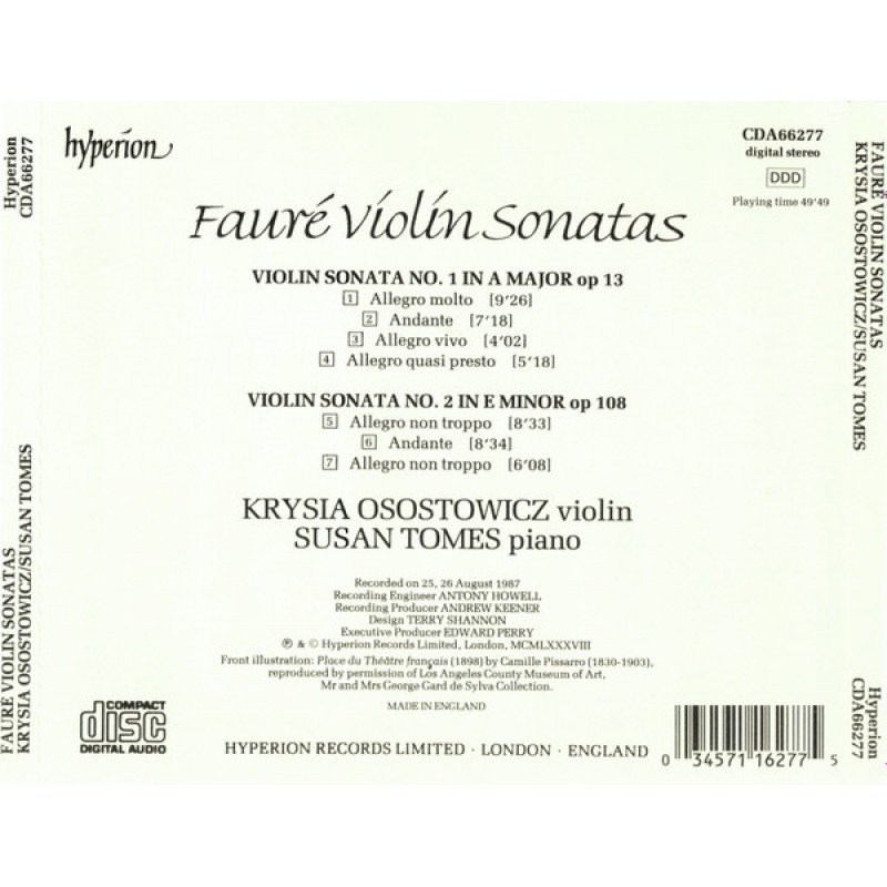 Fauré* - Krysia Osostowicz, Susan Tomes - Violin Sonatas (CD, Album)