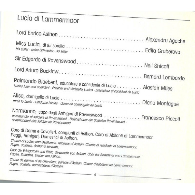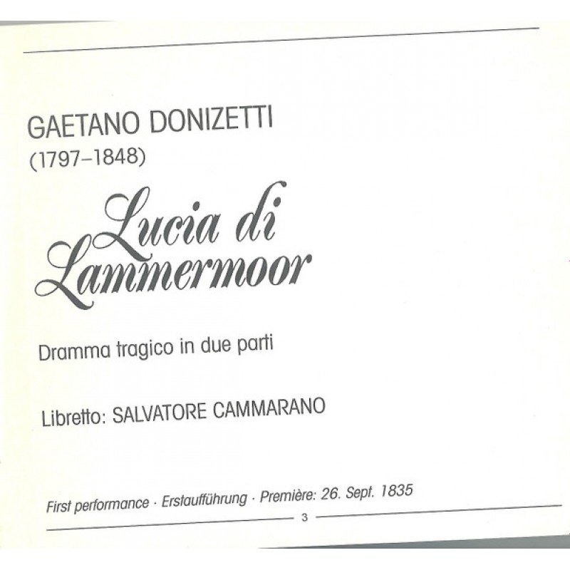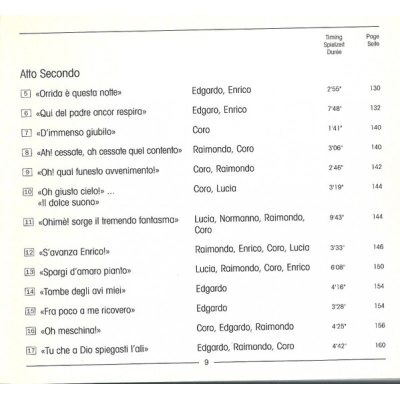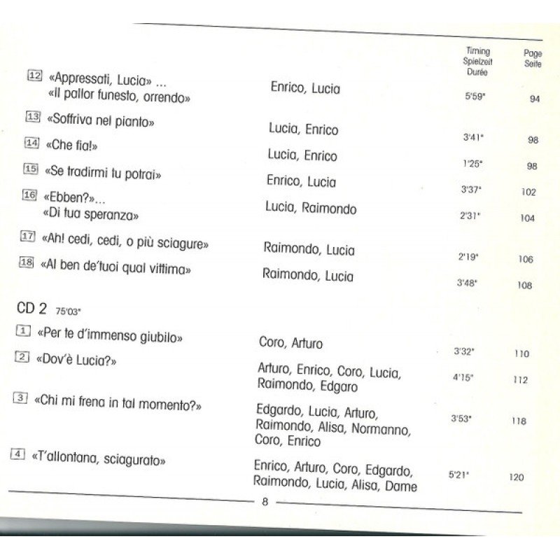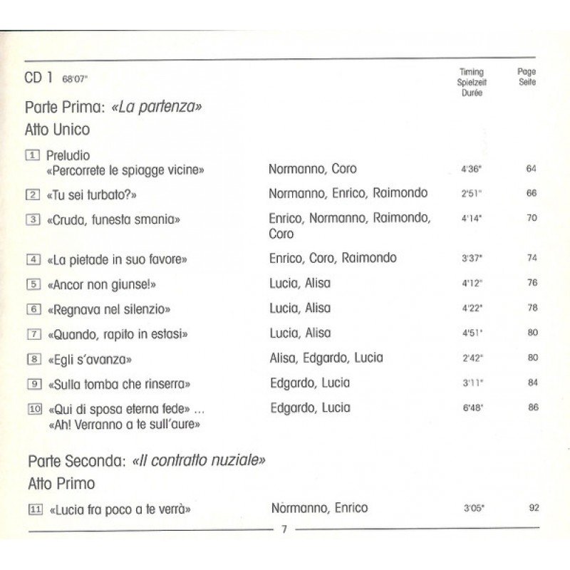 Track List | Lucia Di Lammermoor (Dramma Tragico In Due Parti) Parte Prima: "La Partenza" - Atto Unico Parte Seconda "Il Contratto Nuziale" - Atto Primo Atto Secondo |