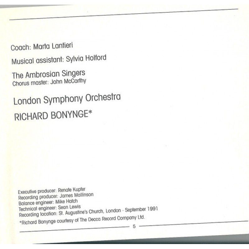 Recorded at St. Augustine's Church, London - September, 1991.Comes in a boxset including a 2-CDs jewel case and a 170-page booklet, with liner notes in English, German, French and libretto in Italian, English, German, French.