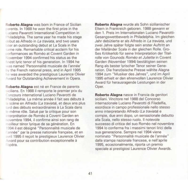 With 244-page booklet with liner notes, synopsis and libretto in English, French, German, and Italian