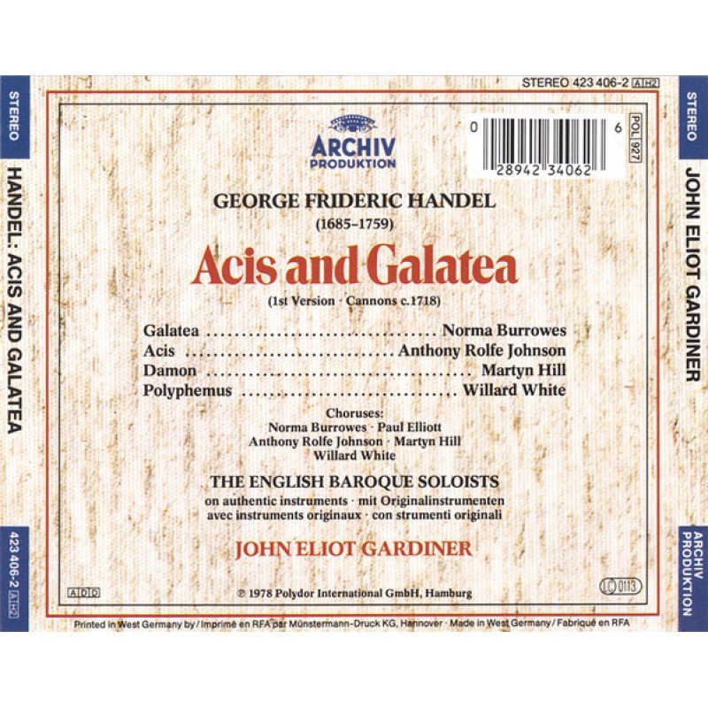 George Frideric Handel* - Norma Burrowes, Anthony Rolfe Johnson, Martyn Hill, Willard White, The English Baroque Soloists, John Eliot Gardiner - Acis And Galatea (2xCD, Album, RE)