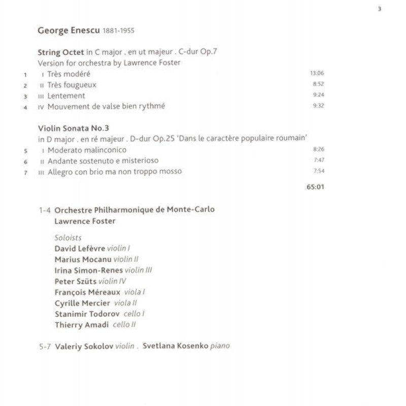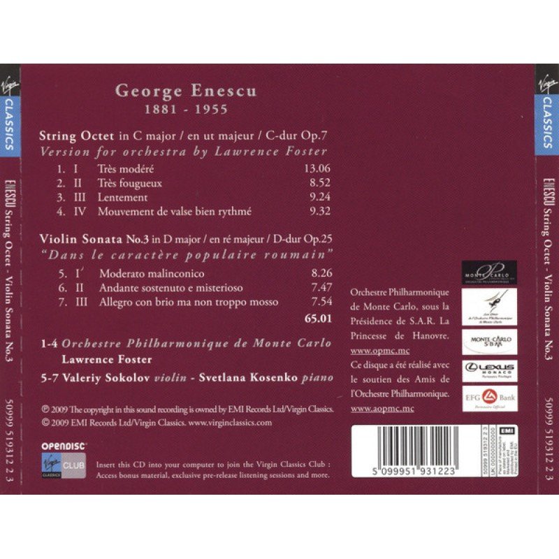 Enescu* - Valeriy Sokolov, Svetlana Kosenko, Orchestre Philharmonique De Monte-Carlo, Lawrence Foster - String Octet, Violin Sonata No.3 (CD, Album, Enh)