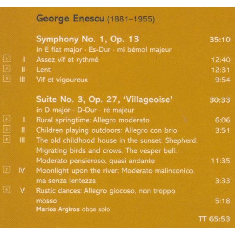 Track List | Symphony No. 1, Op. 13 In E Flat Major ∙ Es-Dur ∙ Mi Bémol Majeur Suite No. 3, Op. 27 'Villageoise' In D Major ∙ D-Dur ∙ Ré Majeur |