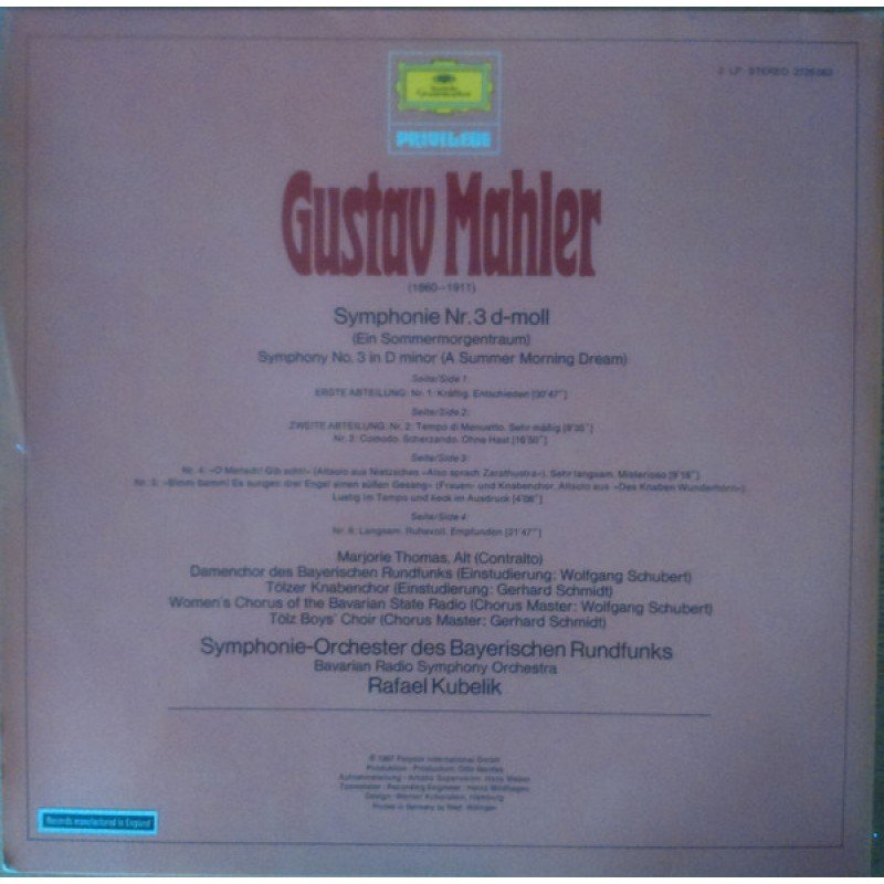 Gustav Mahler – Marjorie Thomas, Symphonie-Orchester Des Bayerischen Rundfunks - Rafael Kubelik - Symphonie Nr. 3 (2xLP, RP, Gat)