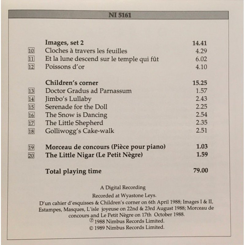 Track List | 1 IMAGES, Set 1, Reflets Dans L’eau 2 Homage A Rameau 3 Mouvement 4 ESTAMPES, Pagodes 5 La Soirée Dans Grenade 6 Hardin’s Sous La Pluie 7 Masques 8 D’un Cahier D’esquisses 9 L’isle Joyeuse 10 IMAGES, Set 2, Cloches À Travers Feuilles 11 Et La Lune Descend Su |