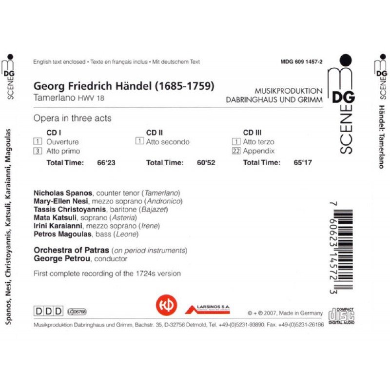 Georg Friedrich Händel, Nicholas Spanos, Mata Katsuli*, Mary-Ellen Nesi, Tassis Christoyannis, Irini Karaianni, Petros Magoulas, Orchestra Of Patras, George Petrou - Tamerlano HWV 18 (3xCD, Album)