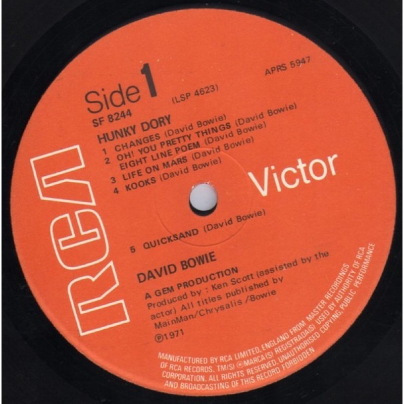 Note that the lyric insert and the A side label drops the question mark punctuation for track A4 ‘Life On Mars?’.