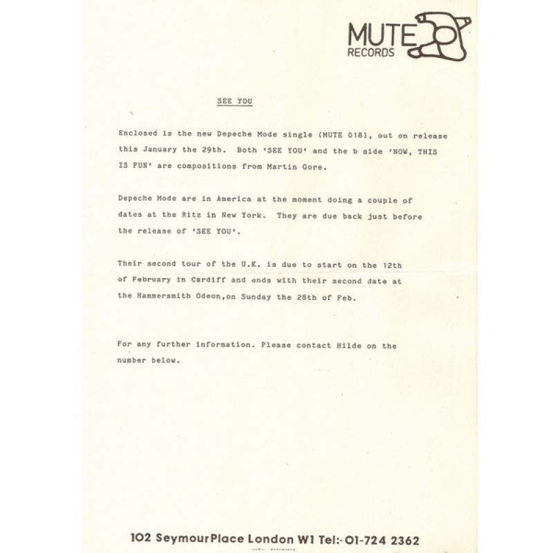 Versions of UK "See You" 7" with catalogue number 7 Mute 018:
