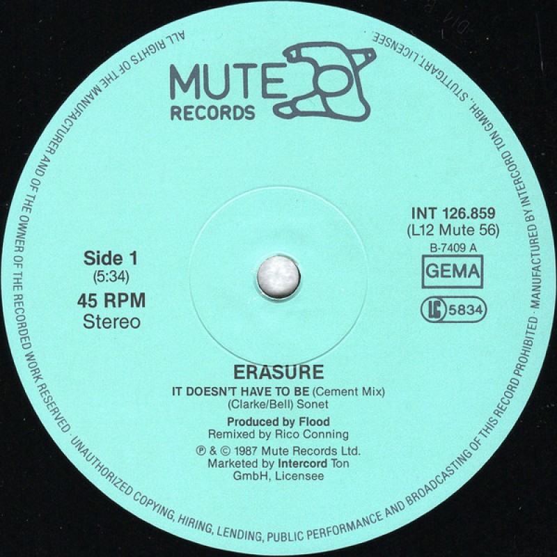 Black vinyl version of limited edition. There is also a [url=http://www.discogs.com/Erasure-It-Doesnt-Have-To-Be-Limited-Edition-Remix/release/447348]coloured version of the limited edition[/url].Total time side B: 7:26