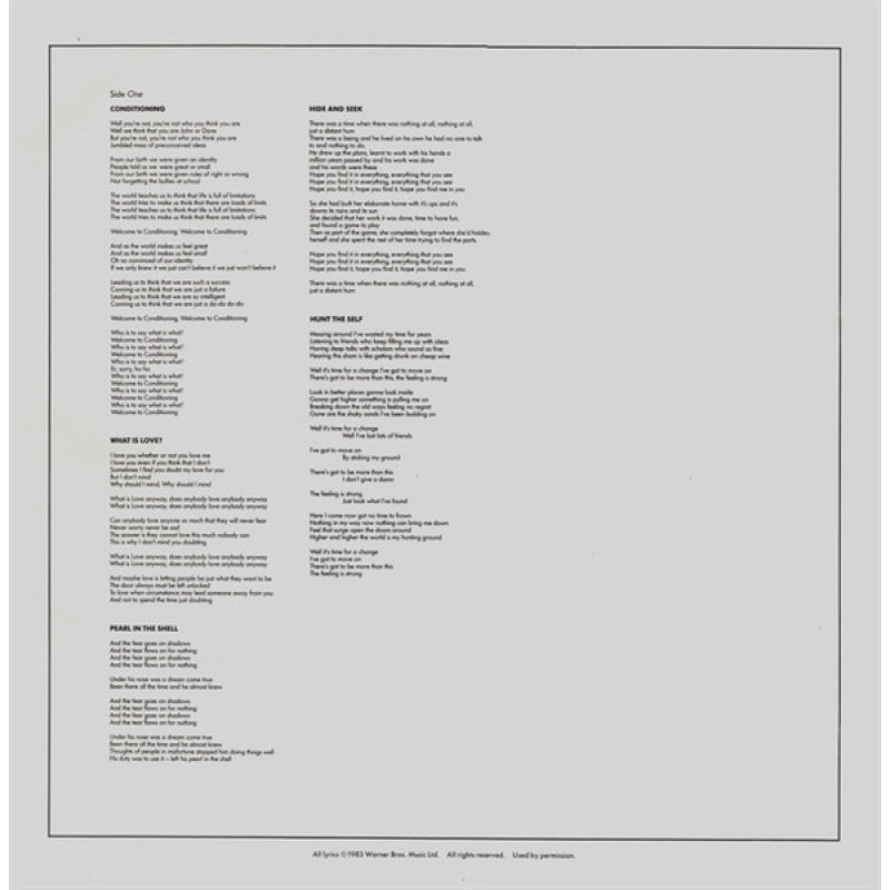 All lyrics ©1983 Warner Bros. Music Ltd.