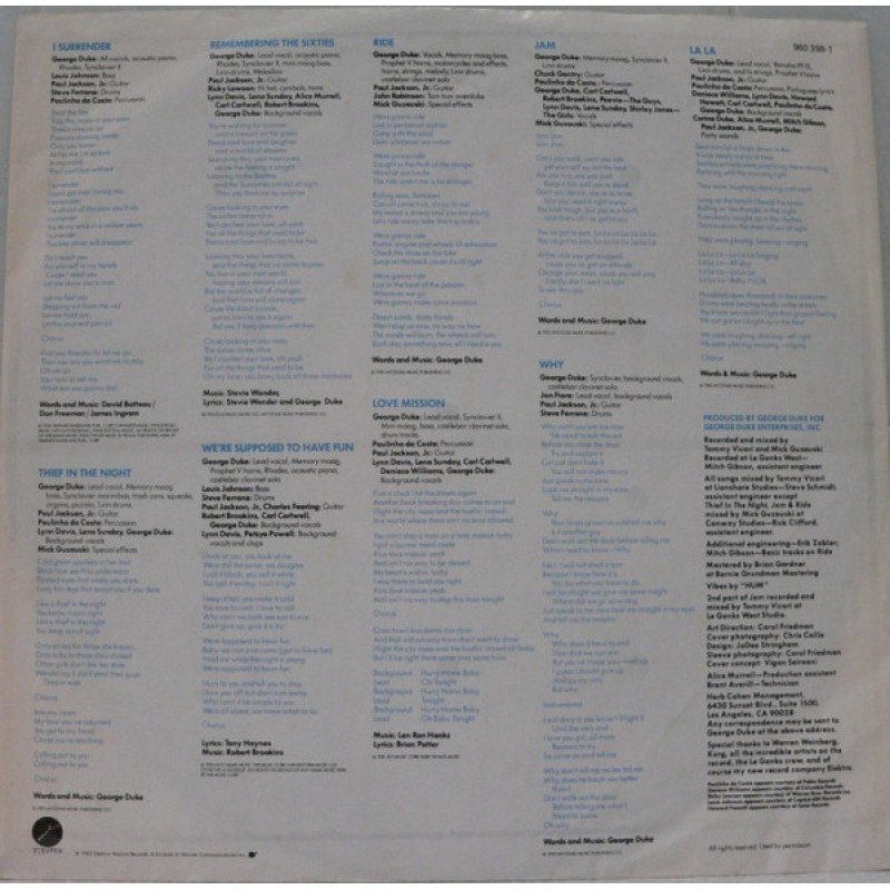 Track List | A1 I Surrender A2 Thief In The Night A3 Remembering The Sixties A4 We're Supposed To Have Fun B1 Ride B2 Love Mission B3 Jam B4 Why B5 La La |
