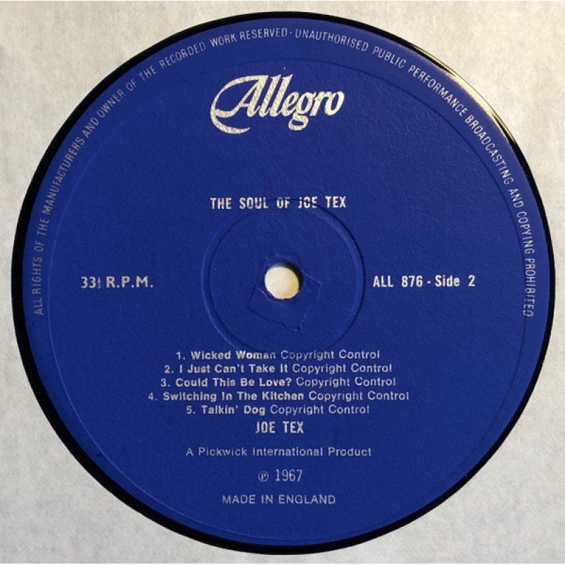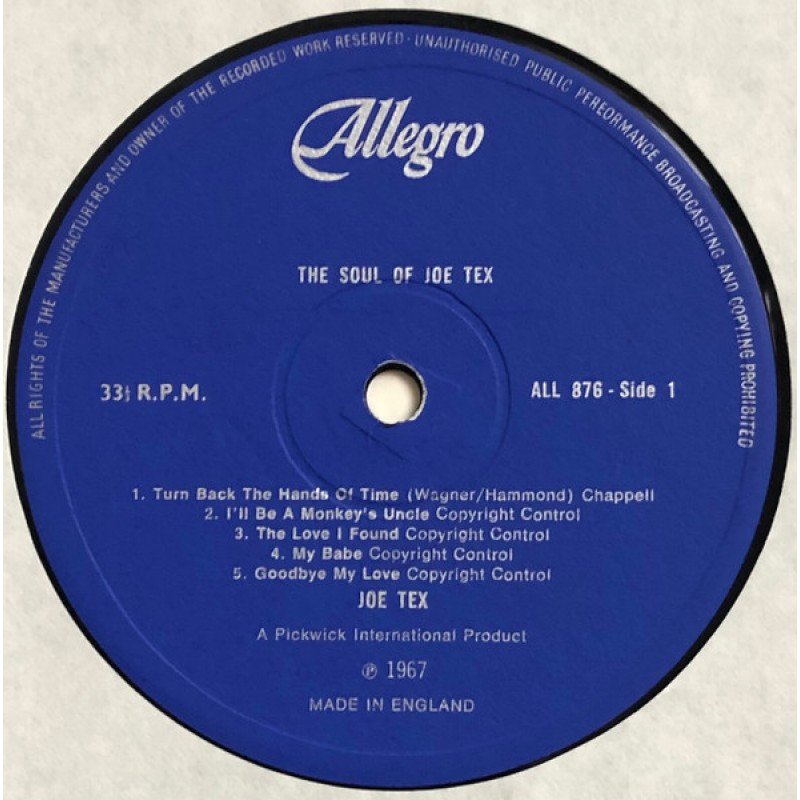 Also issued in [url=https://www.discogs.com/Joe-Tex-The-Soul-Of-Joe-Tex/release/8104717]stereo, cat # SAL 876[/url].Barcode and Other Identifiers