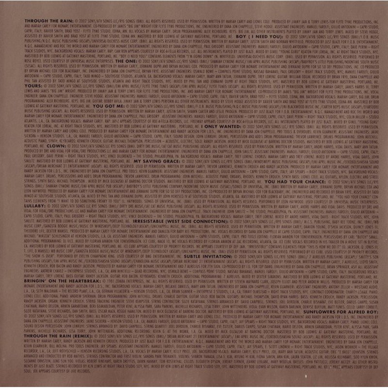 Mastered at Gateway Mastering, Portland, ME.℗ & © 2002 The Island Def Jam Music Group and Mariah Carey