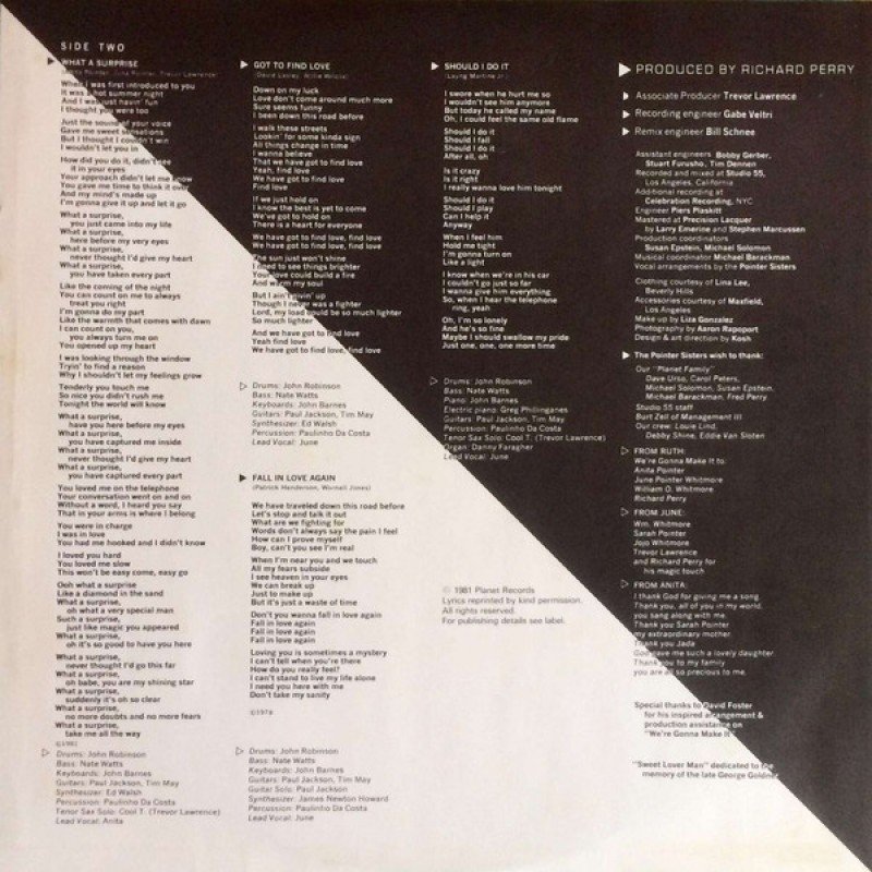 Track List | A1 Sweet Lover Man A2 Someday We'll Be Together A3 Take My Heart, Take My Soul A4 Slow Hand A5 We're Gonna Make It B1 What A Surprise B2 Got To Find Love B3 Fall In Love Again B4 Should I Do It |