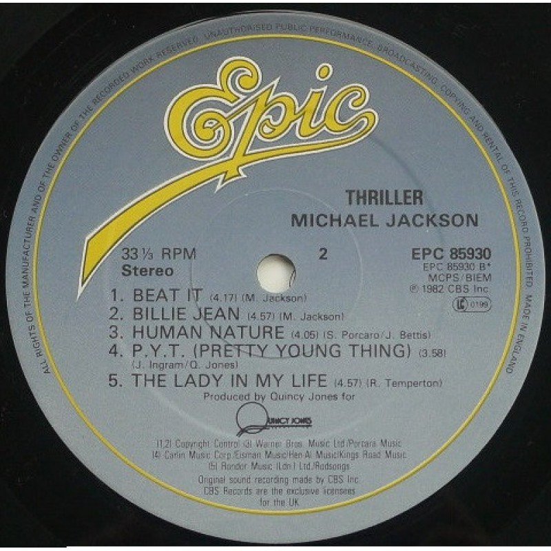 There is also no mention of Michael Jackson being the co-producer on credits on rear of sleeve.