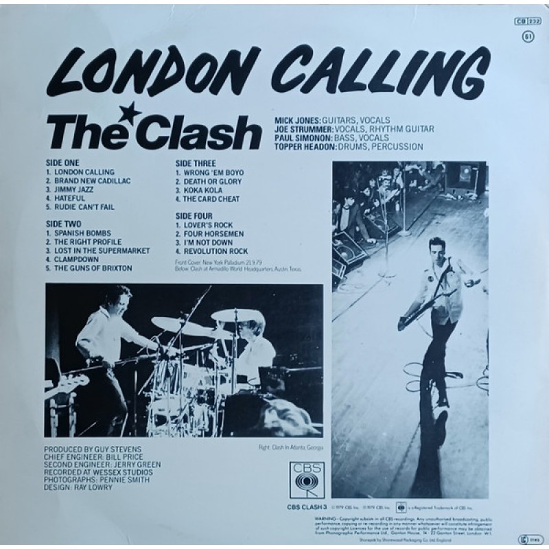 | Track List | A1 London Calling A2 Brand New Cadillac A3 Jimmy Jazz A4 Hateful A5 Rudie Can't Fail B1 Spanish Bombs B2 The Right Profile B3 Lost In The Supermarket B4 Clampdown B5 The Guns Of Brixton C1 Wrong 'Em Boyo C2 Death Or Glory C3 Koka Kola C4 The Card Cheat |