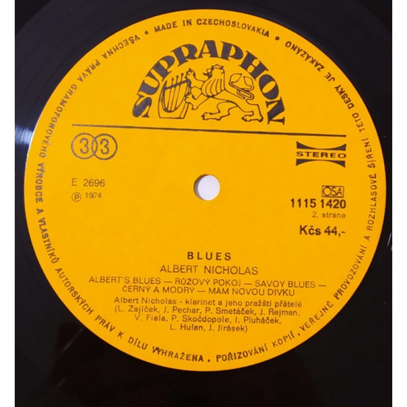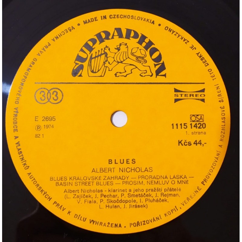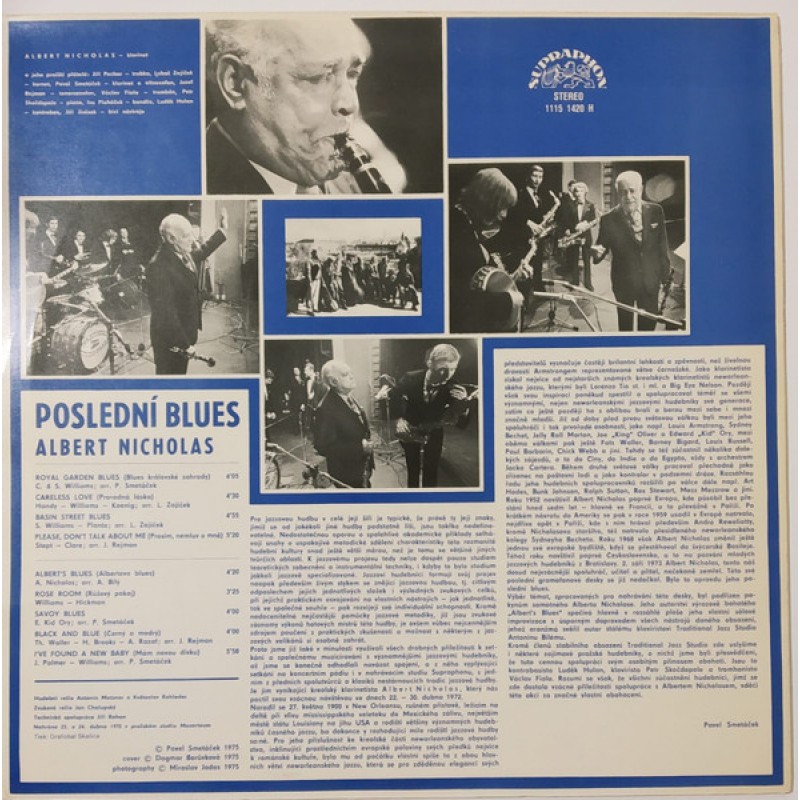 | Track List | A1 Royal Garden Blues (Blues Královské Zahrady) A2 Careless Love (Proradná Láska) A3 Basin Street Blues A4 Please, Don't Talk About Me (Prosím, Nemluv O Mně) B1 Albert's Blues (Albertovo Blues) B2 Rose Room (Růžový Pokoj) B3 Savoy Blues B4 Black And Blue (Černý A Modrý) |