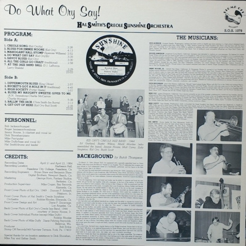 Hal Smith's Creole Sunshine Orchestra - Do What Ory Say! (LP, Album)