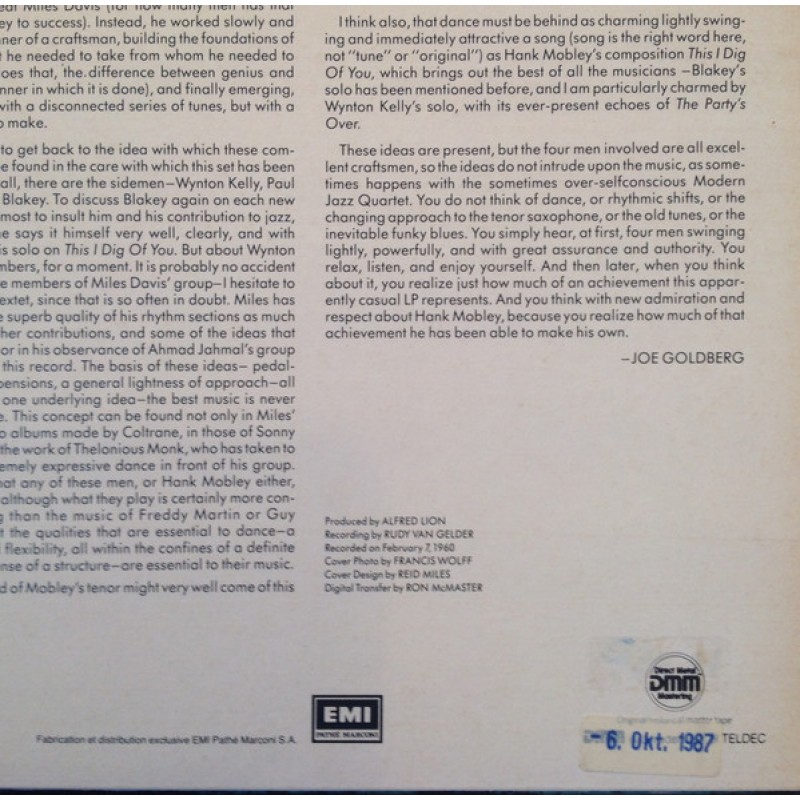 Fabrication by EMI Pathé Marconi S.A.DMM Direct Metal Master