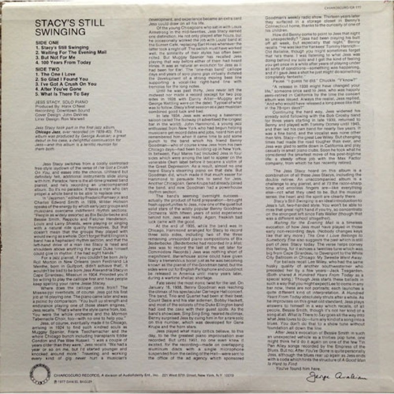 | Track List | A1 Stacy's Still Swinging A2 Waiting For The Evening Mail A3 But Not For Me A4 100 Years From Today B1 The One I Love B2 So Glad I Found You B3 I've Got A Crush On You B4 After You've Gone B5 What Is There To Say |