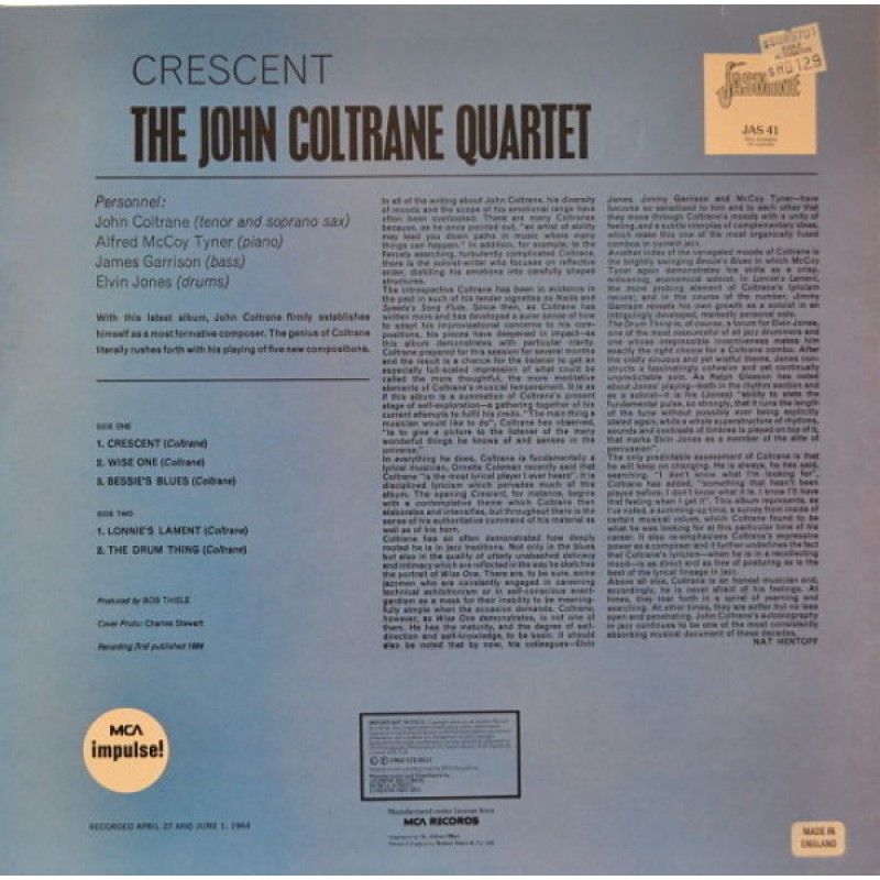 | Track List | A1 Crescent A2 Wise One A3 Bessie's Blues B1 Lonnie's Lament B2 The Drum Thing |