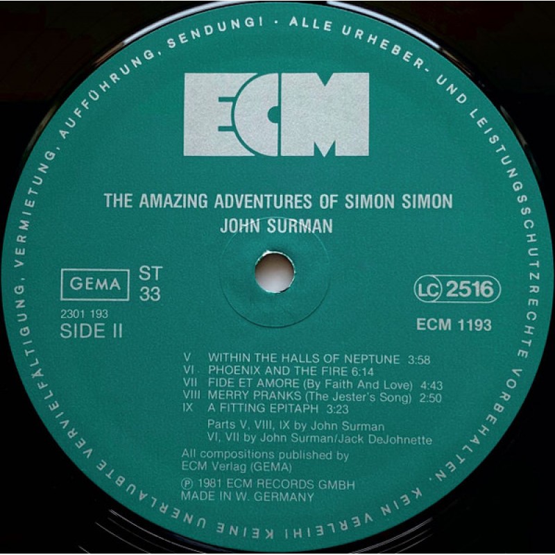 John Surman - The Amazing Adventures Of Simon Simon (LP, Album)