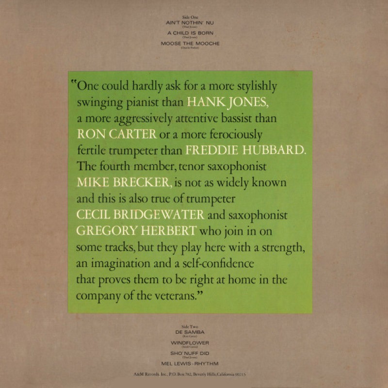 | Track List | A1 Ain't Nothin' Nu A2 A Child Is Born A3 Moose The Mooche B1 De Samba B2 Windflower B3 Sho' Nuff Did B4 Mel Lewis - Rhythm |