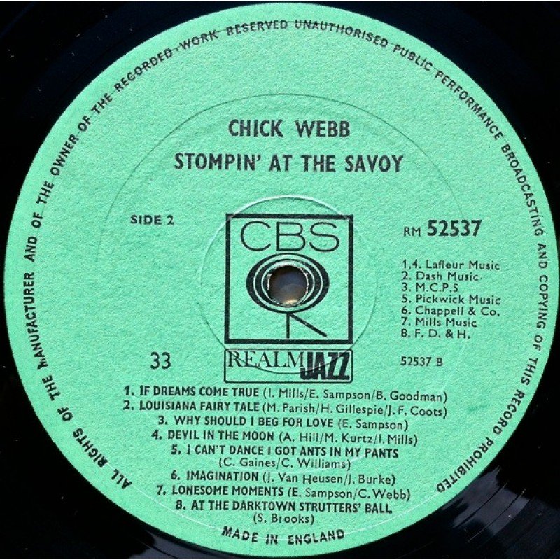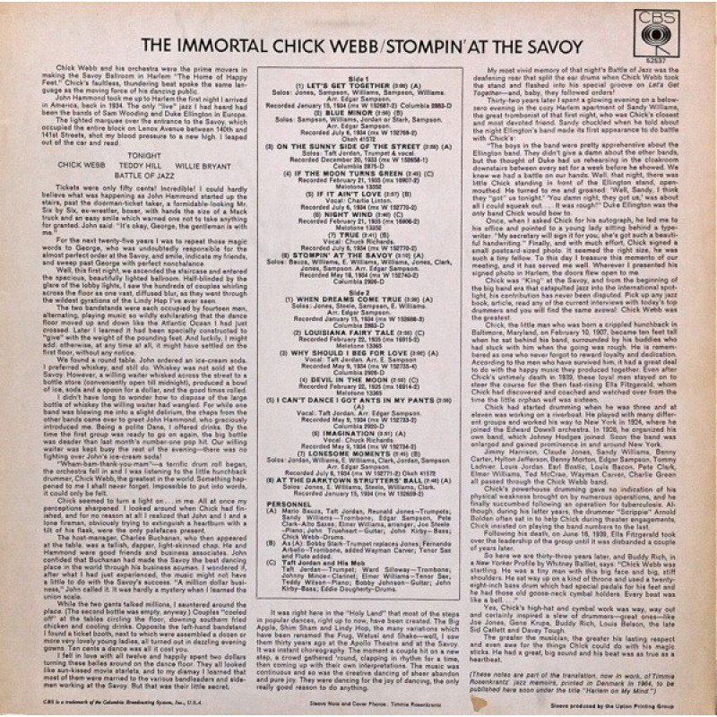 Titled "The Immortal Chick Webb / Stompin' At The Savoy" on cover backBarcode and Other Identifiers