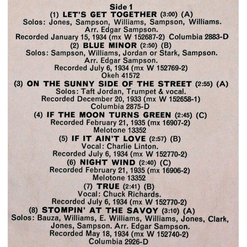 Track List | A1 Let's Get Together A2 Blue Minor A3 On The Sunny Side Of The Street A4 If The Moon Turns Green A5 If It Ain't Love A6 Night Wind A7 True A8 Stompin' At The Savoy B1 When Dreams Come True B2 Louisiana Fairy Tale B3 Why Should I Beg For Love B4 Devil In The Moon |