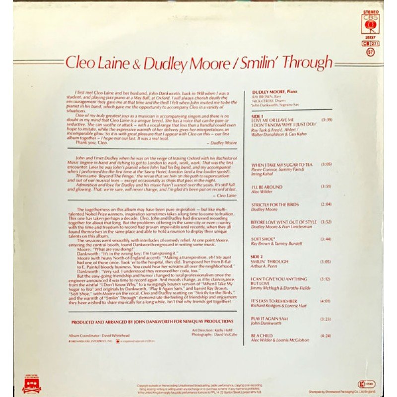 Cleo Laine & Dudley Moore - Smilin' Through (LP, Album)