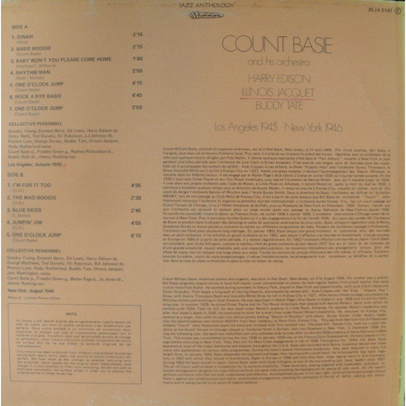Track List | A1 Dinah A2 Basie Boogie A3 Baby Won't You Please Come Home A4 Rhythm Man A5 One O'Clock Jump A6 Rock A Bye Basie A7 One O'Clock Jump B1 I'm For It Too B2 The Mad Boogie B3 Blue Skies B4 Jumpin' Jim B5 One O'Clock Jump |