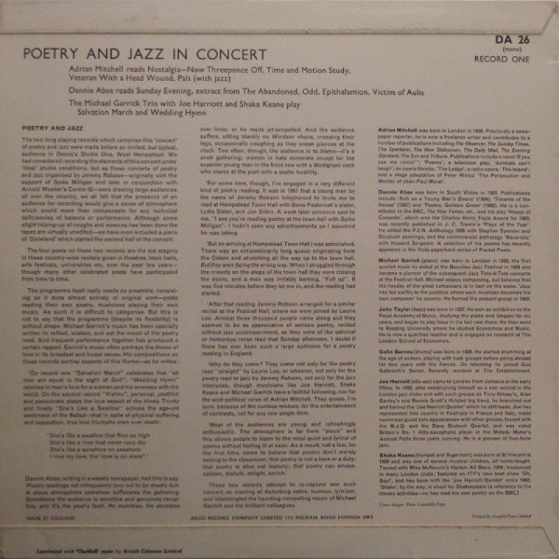 Dannie Abse, Laurie Lee, Adrian Mitchell, Jeremy Robson, The Michael Garrick Quintet* Featuring Joe Harriott And Shake Keane - Poetry And Jazz In Concert - Record One (LP, Mono)