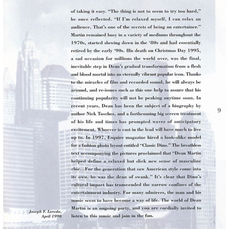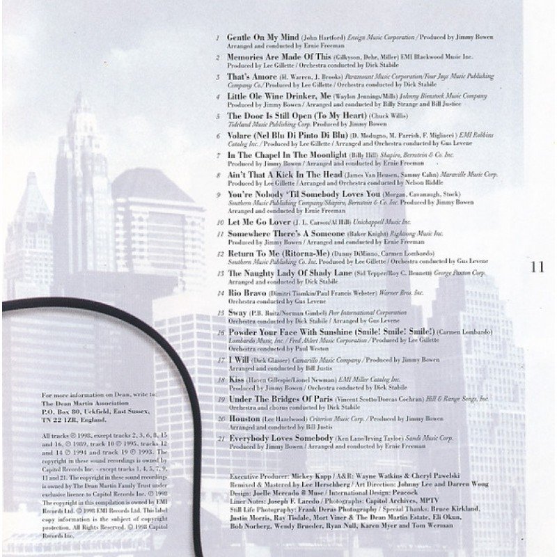 The copyright in these sound recordings is owned by Capitol Records Inc. - except tracks 1, 4, 5, 7, 9 11 and 21. The copyright in these sound recordings is owned by The Dean Martin Family Trust under exclusive license to Capitol Records Inc.