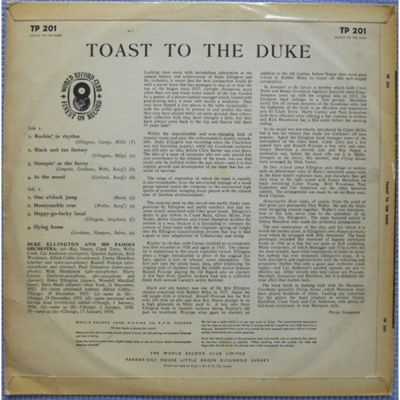 Track List | A1 Rockin' In Rhythm A2 Black And Tan Fantasy A3 Stompin' At The Savoy A4 In The Mood B1 One O'Clock Jump B2 Honeysuckle Rose B3 Happy-go-lucky Local B4 Flying Home |