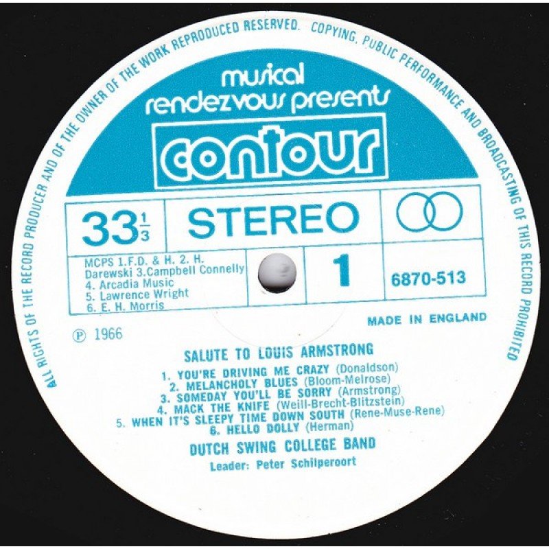 Track List | A1 You're Driving Me Crazy A2 Melancholy (Blues) A3 Someday You'll Be Sorry A4 Mack The Knife A5 When It's Sleepy Time Down South A6 Hello Dolly B1 Cornet Chop Suey B2 Blueberry Hill B3 Potato Head Blues B4 Two Deuces B5 Mahogany Hall Blues Stomp B6 Dipper Mouth Bl |
