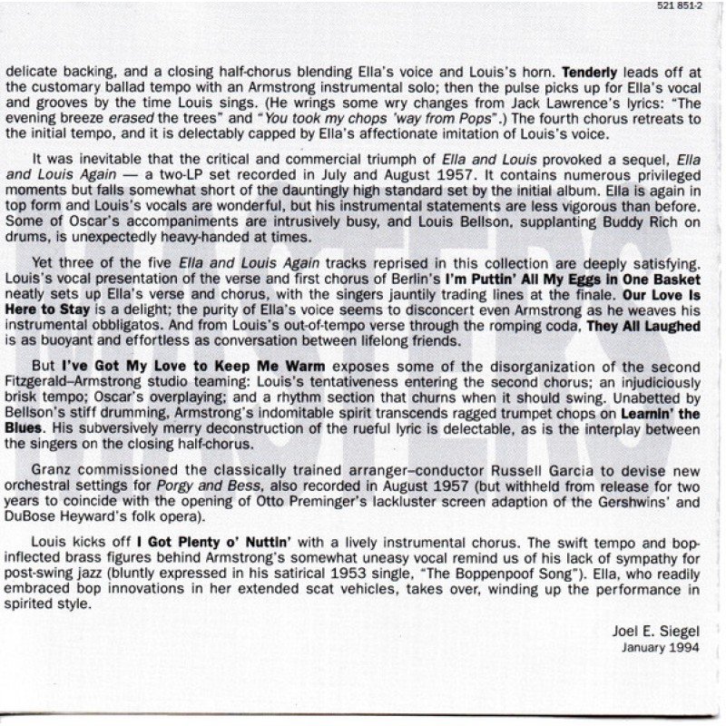 Track List | 1 I've Got My Love To Keep Me Warm 2 Isn't This A Lovely Day? 3 Learnin' The Blues 4 I Got Plenty O' Nuttin' 5 Moonlight In Vermont 6 Under A Blanket Of Blue 7 I'm Puttin' All My Eggs In One Basket 8 Our Love Is Here To Stay 9 April In Paris 10 Tenderly 11 Bess, You Is |