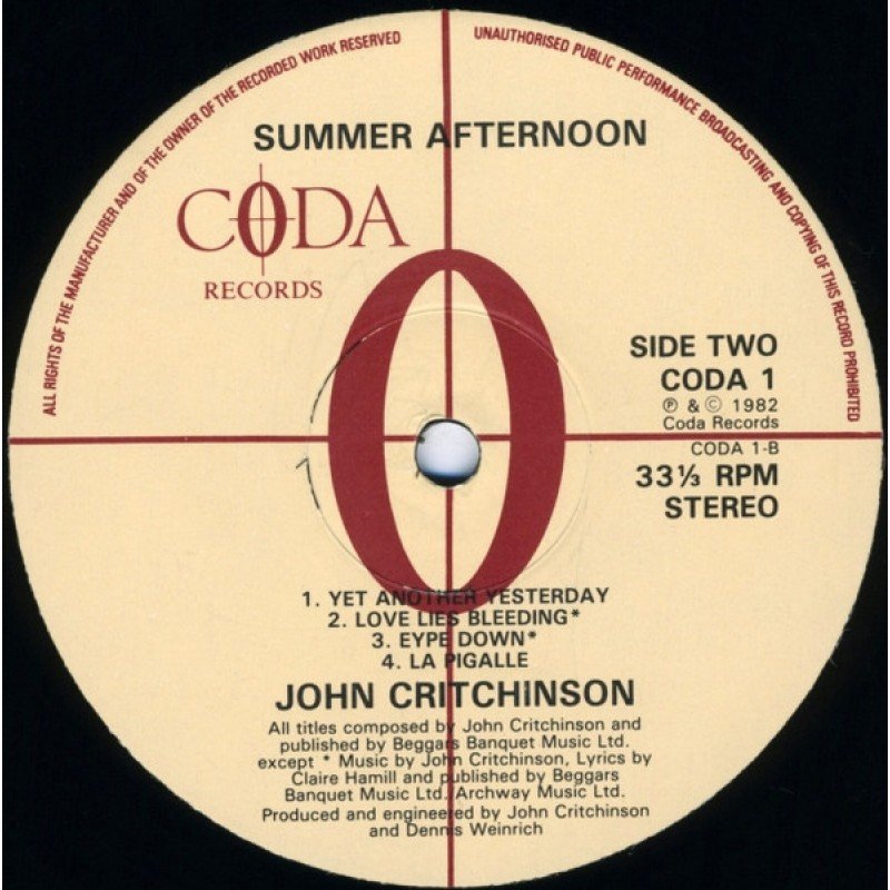 Coda Records made the first 5000 copies with a free art print / insert by the Irish artist Ray Mullan entitled "Summer Afternoon"Barcode and Other Identifiers