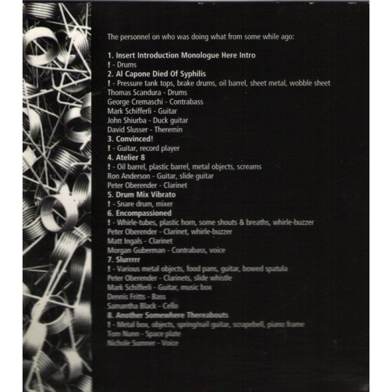 Track List | 1 Insert Introduction Monologue Here Intro 2 Al Capone Died Of Syphilis 3 Convinced! 4 Atelier 8 5 Drum Mix Vibrato 6 Encompassioned 7 Slurrrrr 8 Another Somewhere Thereabouts The 10 Indexes 10 Untitled |