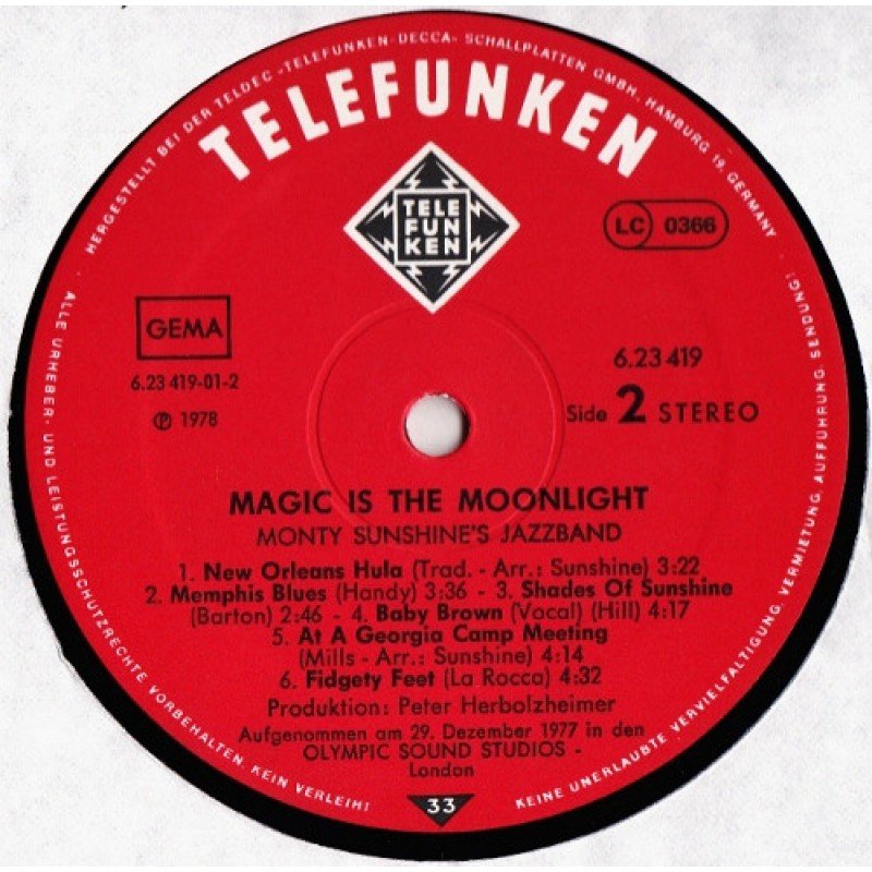 Track List | A1 When My Dreamboat Comes Home A2 Magnolias Wedding Day A3 Magic Is The Moonlight A4 Snag It A5 Carry Me Back To Old Virginny B1 New Orleans Hula B2 Memphis Blues B3 Shades Of Sunshine B4 Baby Brown B5 At A Georgia Camp Meeting B6 Fidgety Feet |