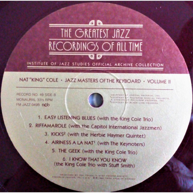 Track List | A1 Stomping At The Panama A2 Blue Because Of You A3 Sweet Lorraine A4 Jumpin' At Capitol A5 I Realize Now A6 Peg O' My Heart B1 Easy Listening Blues B2 Riffamarole B3 Kicks B4 Airiness À La Nat B5 The Geek B6 I Know That You Know C1 Penthouse Serenade C2 |
