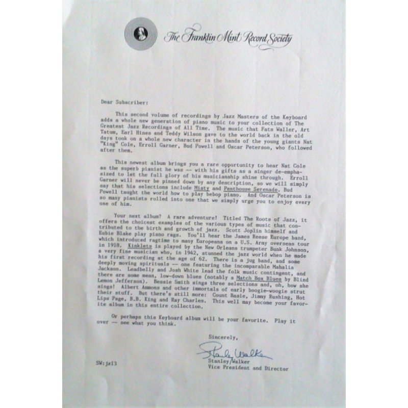 FMRS letter signed Stanley Walker, Vice President and Director.