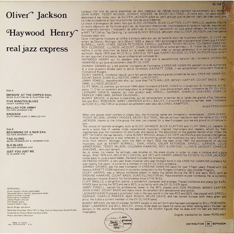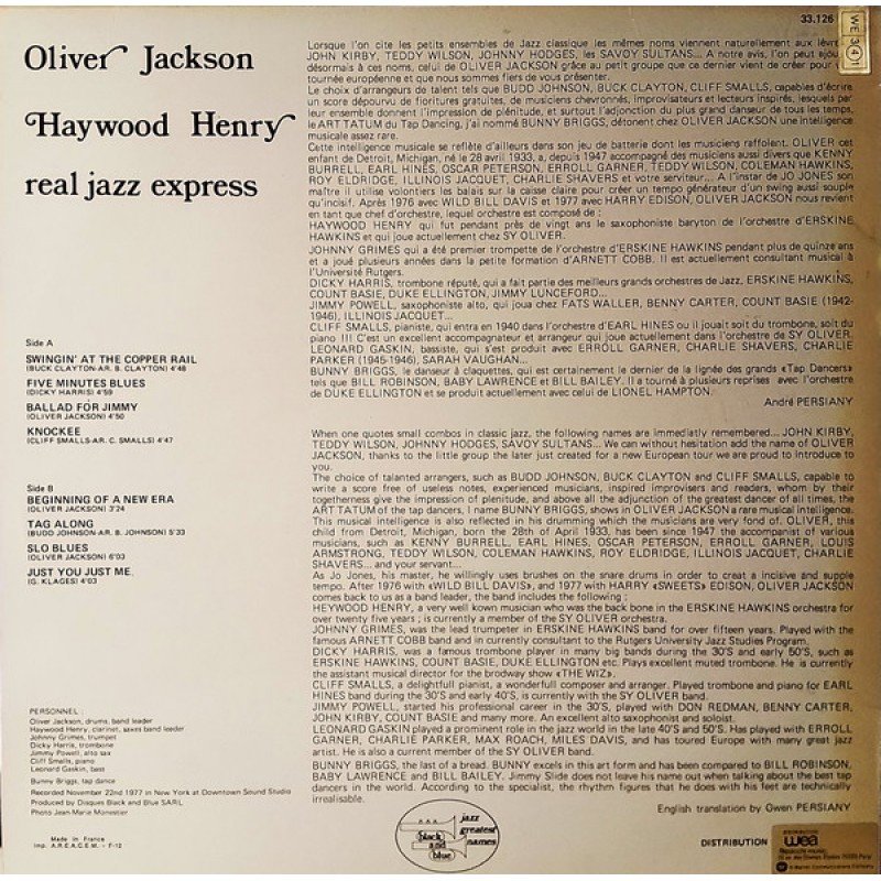 Oliver Jackson, Haywood Henry - Real Jazz Express (LP, Album, RE)