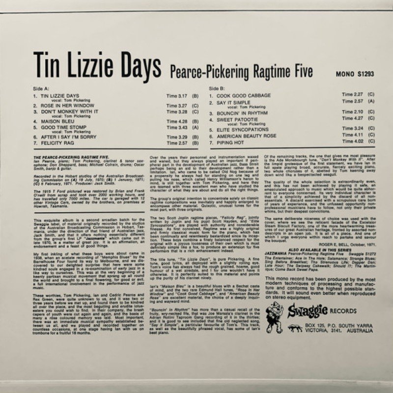 Track List | A1 Tin Lizzie Days A2 Rose In Her Window A3 Don't Monkey With It A4 Maison Bleu A5 Good Time Stomp A6 After I Say I'm Sorry A7 Felicity Rag B1 Cook Good Cabbage B2 Say It Simple B3 Bouncin' In Rhythm B4 Sweet Patootie B5 Elite Syncopations B6 American Beauty R |