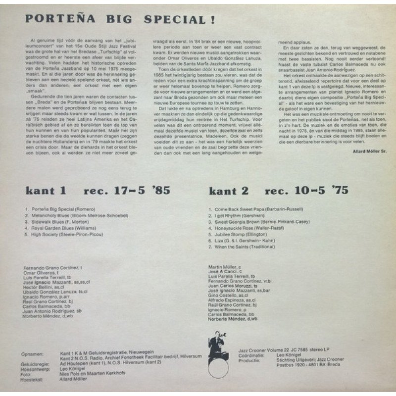 Track List | A1 Porteña Big Special A2 Melancholy Blues A3 Sidewalk Blues A4 Royal Garden Blues A5 High Society B1 Come Back Sweet Papa B2 I Got Rhythm B3 Sweet Georgia Brown B4 Honeysuckle Rose B5 Jubilee Stump B6 Liza B7 When The Saints |