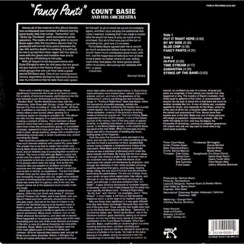 Count Basie And His Orchestra* - "Fancy Pants" (LP, Album, RE)