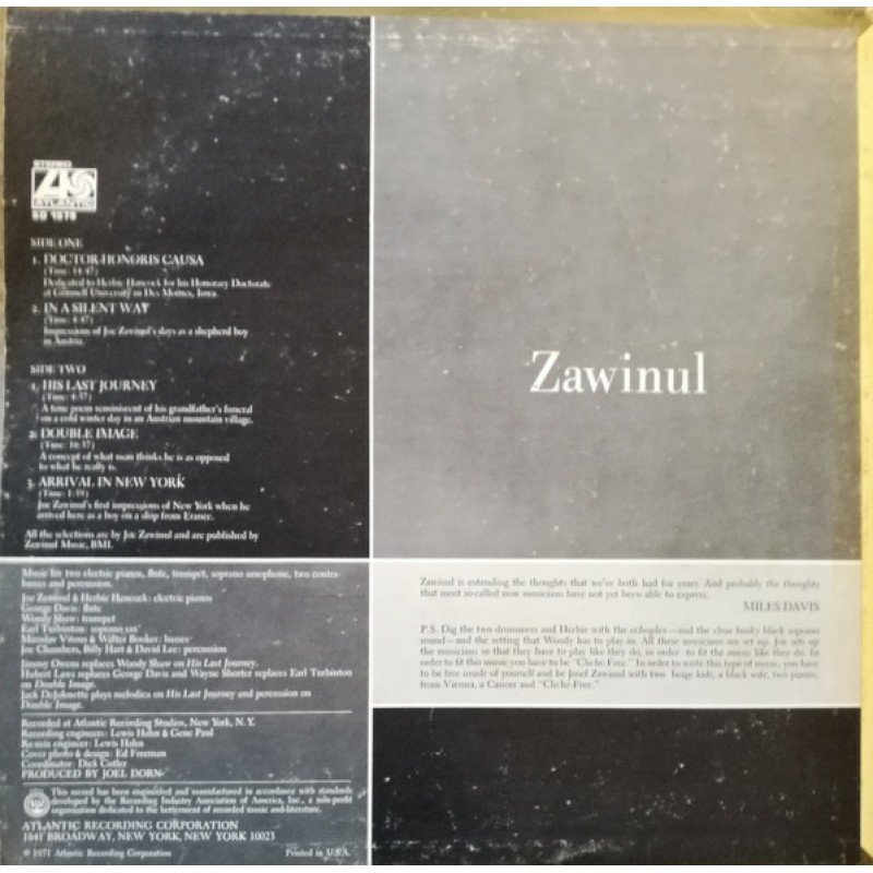 Track List | A1 Doctor Honoris Causa A2 In A Silent Way B1 His Last Journey B2 Double Image B3 Arrival In New York |